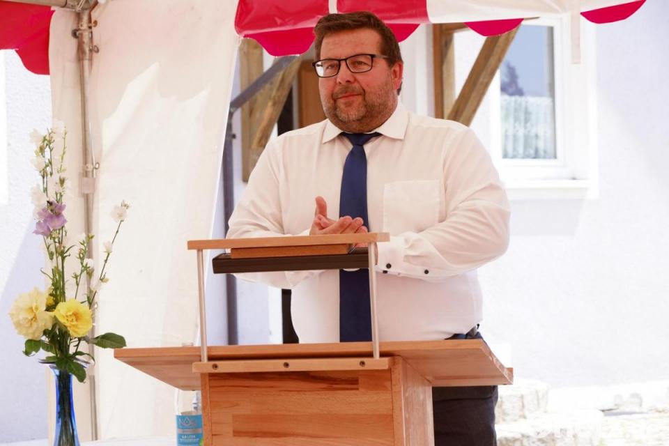 Der Vorsitzende der Feuerwehr, Adrian Scheitler, hatte zuvor bei seiner Begrüßung Bürgermeister Thomas Kaufmann ausdrücklich dafür gedankt, seinen Urlaub für die Segnung von Straße und Dorfplatz unterbrochen zu haben. Pfarrer Markus Bruckner forderte bei der kirchlichen Segnung dazu auf, die beiden Projekte richtig zu gebrauchen und wertzuschätzen. Sein Segen galt den Nutzern und allen, die in die Arbeiten eingebunden waren. In seinen Fürbitten bat er, dass alle Verkehrsteilnehmer gegenseitig Rücksicht nehmen.