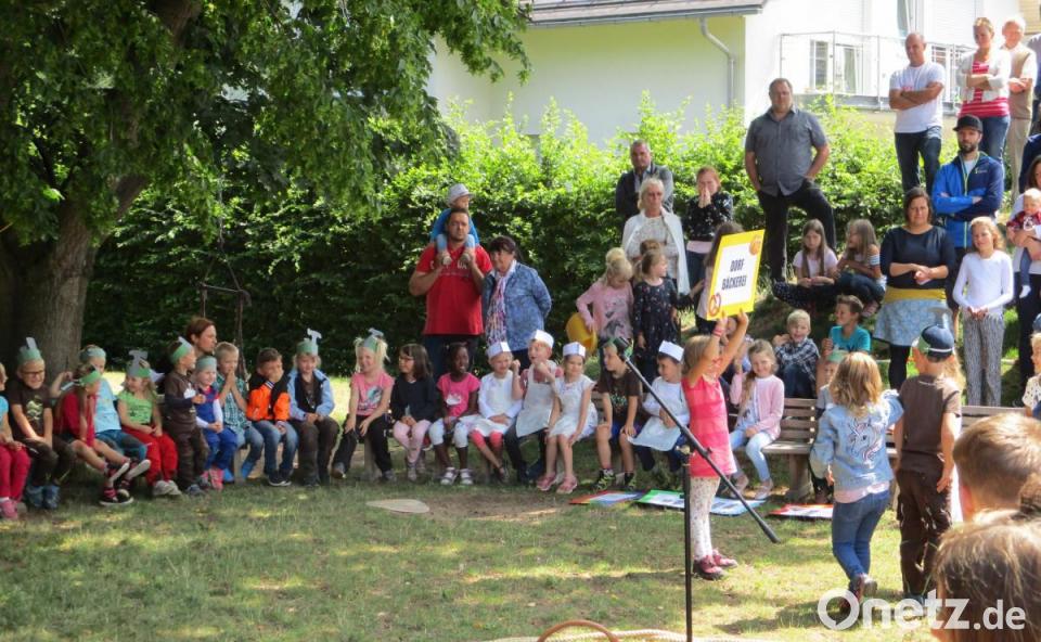 Nach der gelungenen Aufführung setzte sich das bunte Programm fort. An Spielstationen konnten sich die Mädchen und Buben schminken lassen, Schätze im Sandkasten finden oder Perlenspiralen basteln. Kinderlieder begleiteten sie mit ihren Instrumenten. Dazu gab es bunte Tattoos und einen Reifenzielwurf. Für ihren Fleiß erhielten alle Kleinen des Kinderhauses eine Kugel Eis. Ebenso konnten sich die Gäste, darunter Pfarrer Markus Bruckner, bei einer großen Auswahl an Kaffee und Kuchen den Nachmittag versüßen. Zur Erinnerung knipsten viele große und kleinen Gäste noch das ein oder andere Familienbild in einer Fotobox.