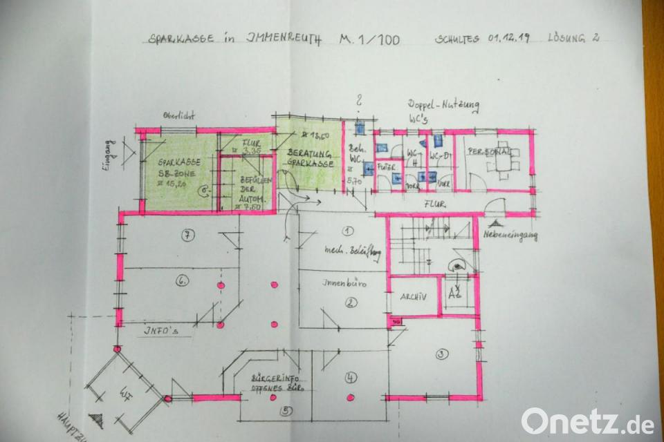 Wie Zitzmann betonte, schränke sich die Aufgabe der Sparkasse nicht alleine auf die Geldversorgung. Angesichts einer in die digitale Welt tauchende Gesellschaft müsse über den Tellerrand hinaus geblickt werden. In Immenreuth bestehe ein besonderer Raumbedarf, den die Sparkasse in ihrem Gebäude anbieten könne. Nicht verloren gehen würden dabei die Beratung und die Geldversorgung vor Ort. Beides, Bankgeschäft in verkleinerten Räumen und Verwaltungsräume für die Gemeinde, könnten zusammengebracht werden. "Wir wollen vor Ort bleiben und die Gemeinde mit ausreichenden Raum versorgen", versicherte Hans-Jörg Schön. Sieben Räume könne die Gemeinde beanspruchen. Umgebaut werden würde lediglich die bestehend Garage zu einem modern ausgestatteten Servicebereich.