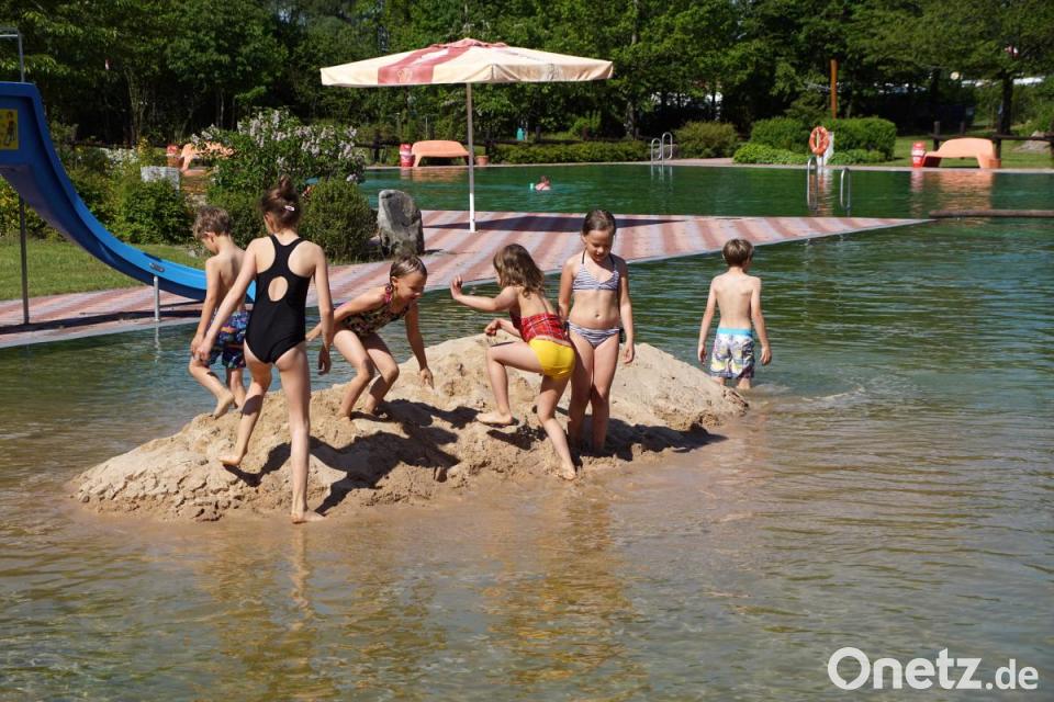 Ein wahrer Sturm setzte auf die Sanddüne des Naturerlebnisbads im Kemnather Land ein. Das beliebteste Objekt nach der Öffnung der Tore am Samstagvormittag war der erstmals aufgeschüttete Sandberg in der Sandlagune. Von den Mädchen und Jungen wurde die Insel begeistert angenommen. Immenreuths zweiter Bürgermeister Josef Hecht und mit ihm neun Immenreuther Gemeinderäte kamen, um bei viel Sonnenschein in die Badesaison zu starten.