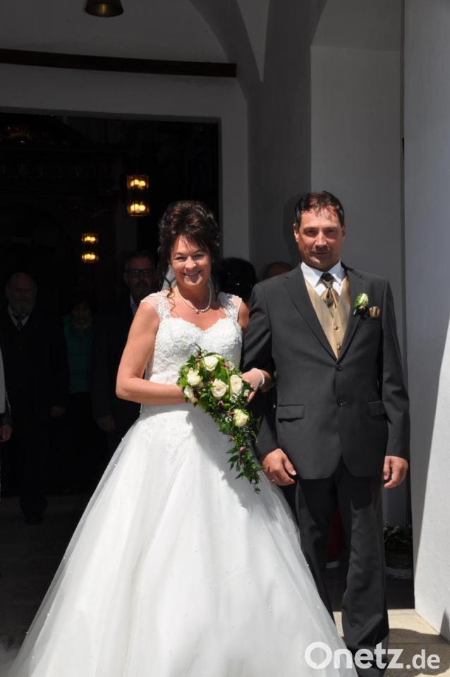 Vor dem Gotteshaus wurden die 43-jährige Zahnarzthelferin und ihr 45-jähriger Gatte von den Familien, Verwandten, Freunden und Arbeitskollegen gebührend empfangen und zu ihrem neuen Familienstand beglückwünscht. Tauben stiegen in den blauen Sonnenhimmel auf und waren das äußere Zeichen der vielen Wünsche für den geschlossenen Ehebund.