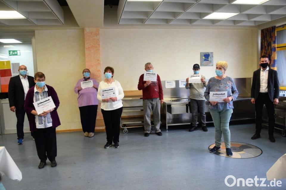 Vorstandsvorsitzender Christian Stadler war beeindruckt. Vor allem von Monika Völkl aus Freudenberg, Landkreis Amberg-Sulzbach. Das HPZ steckte noch in den Kinderschuhen, als die Jubilarin vor 50 Jahren ihre Arbeit in den Werkstätten begann. "Ihr seid Urgesteine. Und was mich beeindruckt: Ihr bastelt nicht etwas, sondern leistet gute Arbeit für das HPZ." Das habe Stadler innerhalb seiner ersten sechs Monate als Chef, dies auch noch in einer schwierigen Zeit, gleich festgestellt. Der Leiter der Werkstätten, Josef Albang, lobte, dass trotz der Corona-Einschränkungen und dadurch bedingten Umsetzungen innerhalb der Arbeitsgruppen niemand gemurrt habe. „Wenn wir können, kommt ihr selbstverständlich in eure Arbeitsgruppen zurück", versprach Albang.