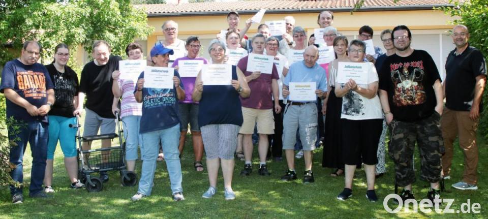 Die so Ausgezeichneten freuten sich über die Geschenkkörbe, selbst ein paar Tränen der Rührung flossen hier und da. Stolz halten sie ihre Jubilars-Urkunden hoch und lachen nach dem herzlichen Applaus in die Kamera: „Wir danken Euch für Eure Loyalität und für Eure Leistung, die Ihr in all den Jahren erbracht habt. Wir gehören zusammen“, sagte Vorstandsmitglied Claudia Prommersberger, die den Ehrengästen, den Werkstatt-Beschäftigten, die Grüße der HPZ-Leitung überbrachte.
