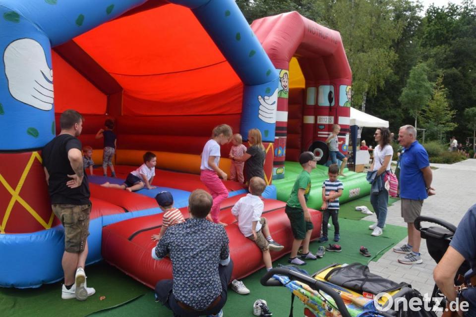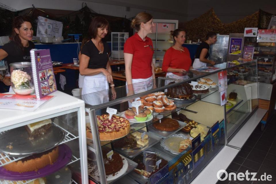 In der Fahrzeughalle befand sich der Gaumenschmaus für die Erwachsenen: das riesige Kuchenbüfett der Frauen um Andrea Dotzler und Patrizia Heuberger. Die hatte als Nachfolgerteam von Christa Kick und Co. auf Anhieb den Ansturm im Griff. Über 50 Kuchen, zum Großteil Rezepte aus dem Irchenriether Backbuch, brauchten nicht lange auf die Liebhaber süßer Gaumenfreuden zu warten.