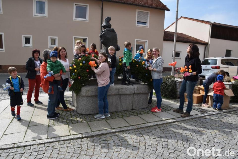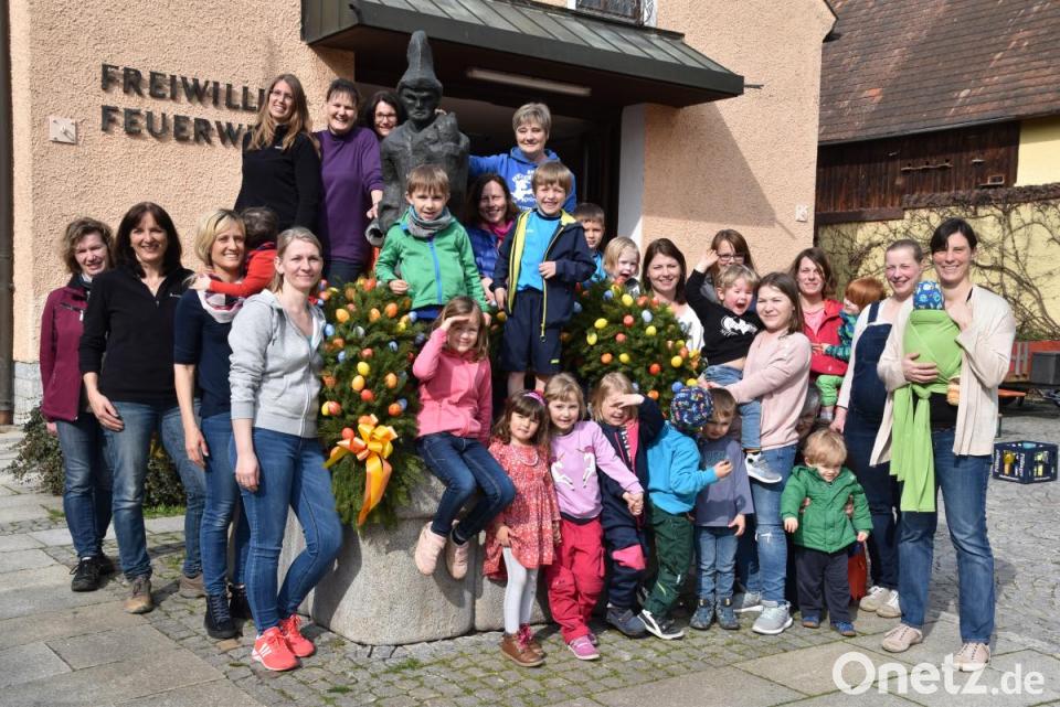 Die Gestaltung des Osterbrunnens war eine Riesenfreude für die Kleinen. Die Leiterin der Mutter-Kind-Gruppe, Ines Röhling, hatte den Ball gefangen und der Frauen Union um Vorsitzende Anita Härtl zu helfen. Die Kleinen banden Sträußchen und fädelten die Eier auf die Schnur. Sie freuen sich zu sagen: "Wir waren dabei", wenn vom Osterbrunnen gesprochen wird. Zur Stärkung gab es Kaffee und Kuchen für die Mamis sowie Muffins, Kekse und Getränke für die Kinder.