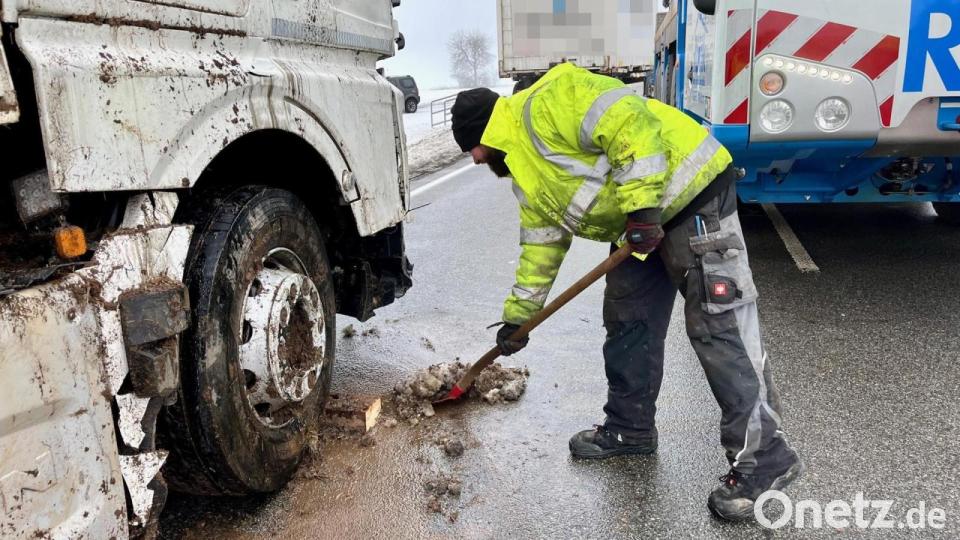Auf der B22 zwischen Bechtsrieth und Irchenrieth ist am Dienstagvormittag ein Lastwagen in den Graben gerutscht.