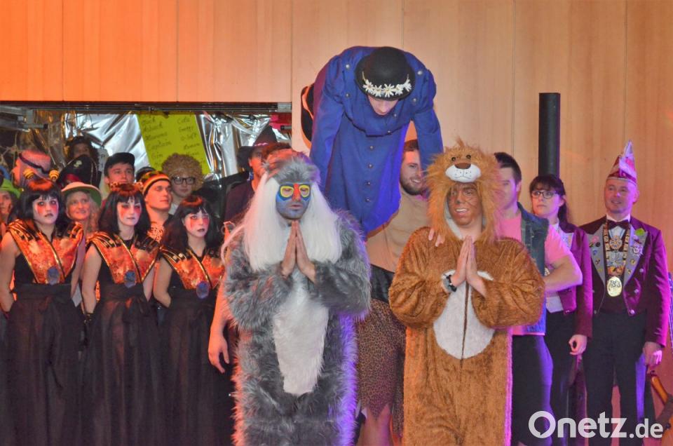 "Einmal im Jahr macht dieses tolle Publikum unser Sportheim zum Narrenhaus", freute sich DJK-Vorsitzender Reinhold Gilch. Premiere und erster Höhepunkt um 22 Uhr war der Auftritt des Vereins "Neustädter Faschingszug". Prinzessin Andrea und Prinz Maximilian hatten den gesamten Hofstaat im Geleit. "Wir sind die große Abordnung mit 30 Leuten", sagte Vizepräsidentin Lisa Schedl. Getreu dem Motto "Mit dem schwarzen Kater Hand in Hand, zieht frischer Wind durchs Narrenland", bliesen die Profinarren mehr als frischen Wind, schon einen Sturm, in den Saal. Das Prinzenpaar führte den Gardetanz auf und die Burschentruppe glänzte mit ausgefallener Choreografie. Die Stimmung kochte, als um Mitternacht der zweite Höhepunkt kam. Die Mitternachtsshow der DJK-Fußballer ist jedes Jahr ein Schenkelklopfer. Nach den Worten von Organisator Günther Wolfrum hatten die Kicker seit November ihren Auftritt geprobt.