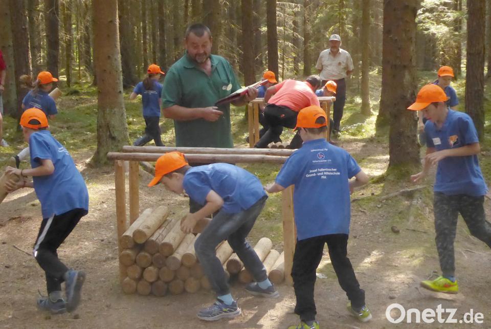 Sie warfen mit Zapfen auf ein Ziel, schlichteten möglichst schnell Rundhölzer von einem Stapel zum fünf Meter entfernten um, bauten einen Dachstuhl und angelten laminierte Pappblätter, die sie an dem richtigen Baum befestigen mussten. Nach der Auswertung werden die drei Bestplatzierten demnächst bei einer kleinen Feierstunde an ihrer Schule Preise in Empfang nehmen dürfen.