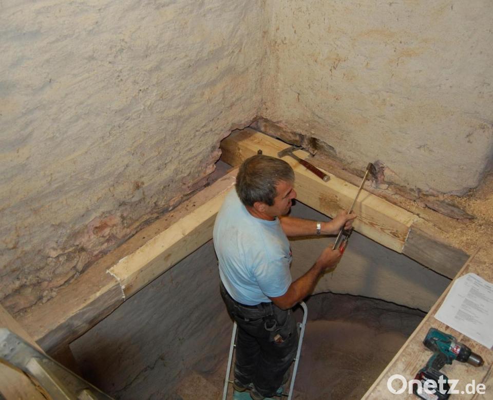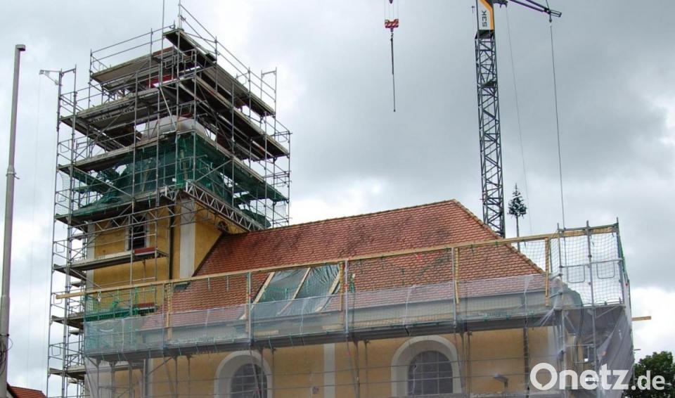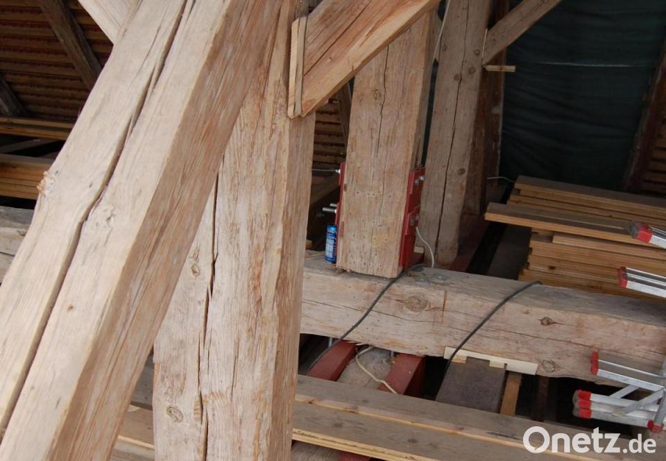Dadurch werde der Sanierungsaufwand am Turm größer als ursprünglich angenommen. Positiv wertete Pflaum, dass „die Firmen gut mitziehen“. Bei dem derzeitigen Wetter muss immer wieder darauf geachtet werden, den Regen durch Abschirmungen von der Holzkonstruktion und vom Innenraum zu schützen. Der Dachaufbau wird nun neu so errichtet, dass er „wasserdicht“ wird. Im Innern des Turmes mussten einige schadhafte Balkenteile erneuert werden.