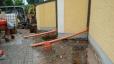 Die Firma Reim-Krauss aus Schirmitz hat in diesen Tagen begonnen, an den Außenwänden die vorhandenen Risse zu sanieren. Dazu wird an den betroffenen Stellen der Putz abgeschlagen. Danach werden in die Wand „Nadelanker“ gesetzt und dann verpresst. So wird das Mauerwerk an diesen Stellen stabilisiert.