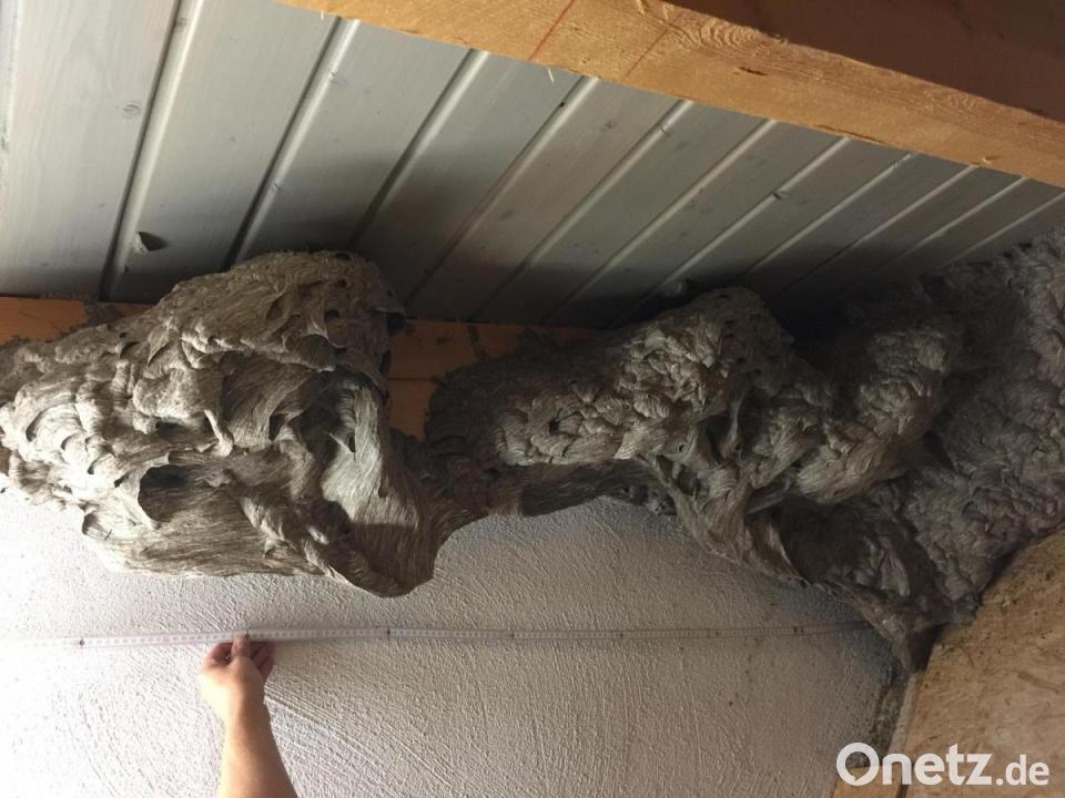 Das etwa zwei Meter lange "Bauwerk" ist jetzt leer. Man braucht also keine Bedenken zu haben, dass sich im Nestinneren noch irgendwelche Wespen aufhalten, die angreifen könnten. Eine Wespenkönigin beginnt wieder im Frühjahr (etwa Mitte April) mit einem Neubau. Ein Altnest wird nicht wieder besiedelt und ist Biomaterial. Man kann es einfach auf dem Kompost oder in der Biotonne entsorgen. Sofern es nicht stört, kann man ein entdecktes, leeres Wespennest ohne Probleme einfach hängen lassen als Dämmmaterial, es löst sich von selbst auf.
