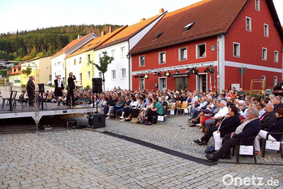 „Der Satan auf dieser Welt hat nur einen Namen: Geld.“ Eine zentrale Aussage der Theateraufführung des Landestheaters Oberpfalz (LTO) am Freitag. Zur Tragödie „Jedermann“ von Hugo von Hofmannstahl hatte der Heimat- und Kulturverein anlässlich der erstmaligen Erwähnung der Waldecker Burg vor 900 Jahren eingeladen. Nicht die Burg selbst, wie in den zurückliegenden Jahren üblich, sondern der Untere Markplatz im Ort wurde zum Theaterraum. „Die Sperre des Marktplatzes ermöglicht es uns“, sagte Vorsitzender Johannes Wagner.