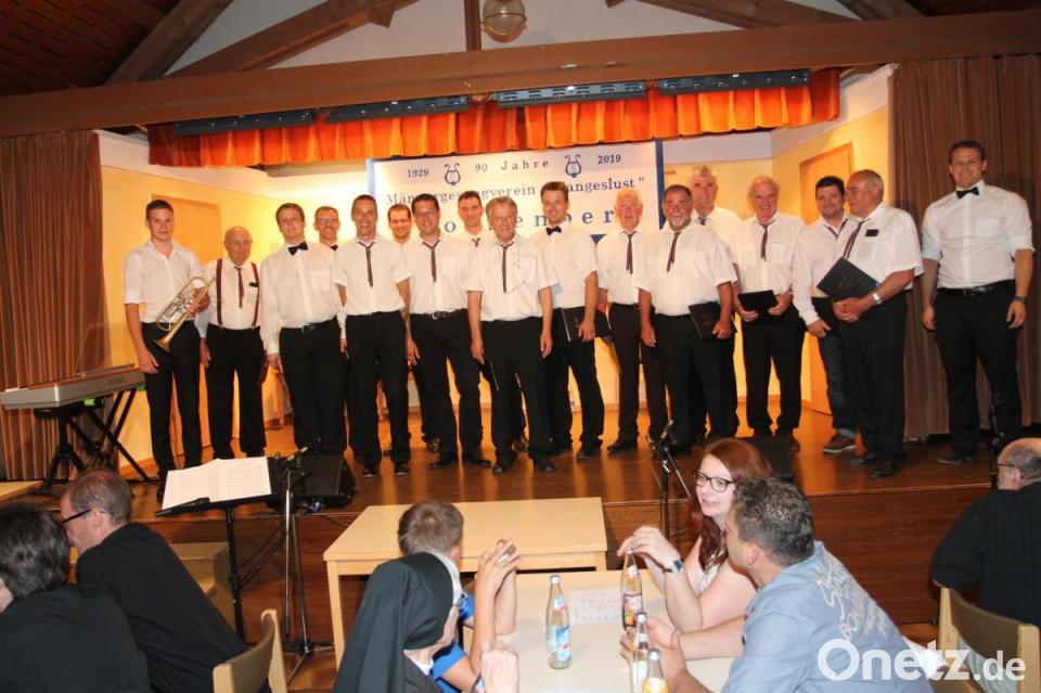 „1929 – 2019: 90 Jahre“ – mit dem von Rupert Herrmann kreierten Schild wiesen die MGV-Sänger auf ihr Jubiläum hin und legten mit „Das Waldhorn“ von Christoph Schmid und „Die Post im Walde“ (Heinrich Schäffer) einen Einstand nach Maß hin.