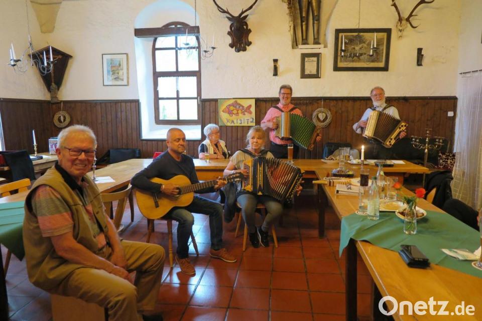 "Endlich können wir wieder zusammen musizieren", freuten sich die Musikanten beim Knöpferl-Stammtisch in der Schlossschänke Kaibitz. Außer Maria und Herbert Storek hatten sich Roland Sertl aus Mitterteich, Sebastian Zeitler aus Waldsassen, Erwin Hornauer aus Tröstau, Karl-Heinz Böhm aus Kemnath und Christine Bleiber aus Mitterteich jeweils mit ihrer Steirischen Harmonika eingefunden.