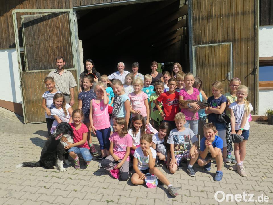 (jzk) Verschiedene Berufe, Haustiere und gesunde Ernährung sind Lerninhalte im Heimat- und Sachkunde-Lehrplan der zweiten Klasse. Um den Unterricht zu vertiefen, besuchte Lehrerin Monika Gottsmann mit ihrer 2a den Bauernhof von Matthias Lorenz in Bingarten. Seine Tochter Hanna freute sich, ihren Klassenkameraden das Anwesen ihrer Eltern und Großeltern zeigen zu können. In der Maschinenhalle erklärte ihr Vater die verschiedenen Getreidesorten, die er an seine Rinder, Hasen, Hühner, Enten und Schweine verfüttert. Natürlich wollten die Kinder die Kleintiere anschauen. Sie staunten über die Traktoren, den Mähdrescher und die anderen großen Maschinen. Im Stall durften sie die Färsen (weibliche Rinder, die noch nicht gekalbt haben) füttern. Nach dem Rundgang war es Zeit für eine Brotzeit im kühlen Schatten der Bäume. Die frische Milch und das Butterbrot mit Schnittlauch schmeckten allen ausgezeichnet.