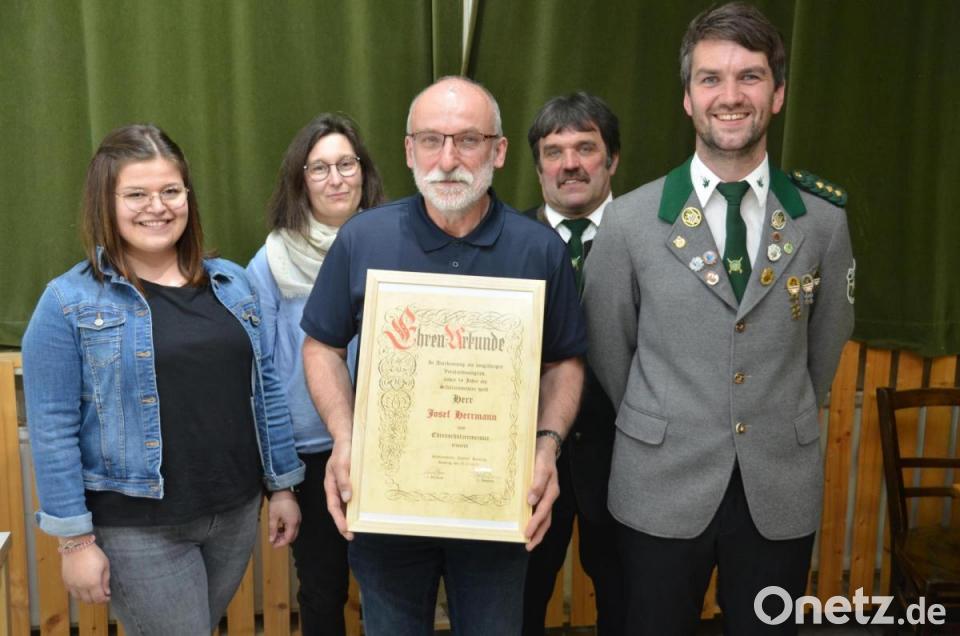 Die „Luhetal“-Schützen haben mit dem langjährigen Vorsitzenden Josef Herrmann einen Ehrenschützenmeister in ihren Reihen. Vorsitzenden Thomas Eiberweiser ist diese Überraschung geglückt. In der Jahreshauptversammlung im alten Schulhaus überreichte er im Beisein des stellvertretenden Gauschützenmeisters Josef Bäumler aus Döllnitz eine gerahmte Ehrenurkunde. 14 Jahre stand Herrmann an der Vereinsspitze und mehr als 20 Jahre ist er im Vorstand tätig. Vor allem die brach liegende Jugendarbeit wurde unter seiner Regie forciert.