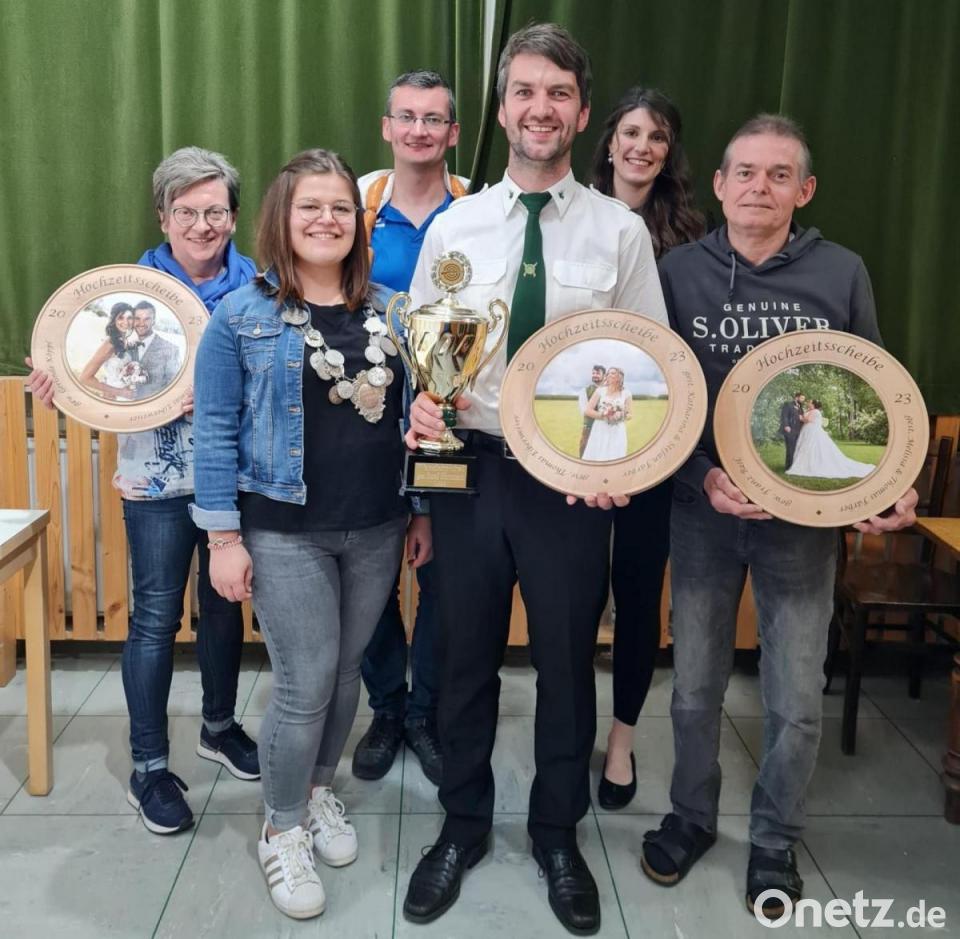Ein Novum feierten die Schützen heuer bei den Hochzeitsscheiben. Gleich drei Paare vermählten sich im vergangenen Jahr und stifteten jeweils eine Hochzeitsscheibe. Dabei gibt jeweils die Braut einen Referenzschuss ab, erklärte der Schützenmeister. Franz Reil sicherte sich die Hochzeitsscheibe von Thomas Färber. Die Hochzeitsscheibe des Ehepaars Stefan und Katharina Färber durfte Thomas Eiberweiser mit nach Hause nehmen. Über seine Hochzeitsscheibe, die er und seine Ehefrau Marina stifteten, freute sich Gerlinde Köppl, die für diese Scheibe den besten Schuss abgab.