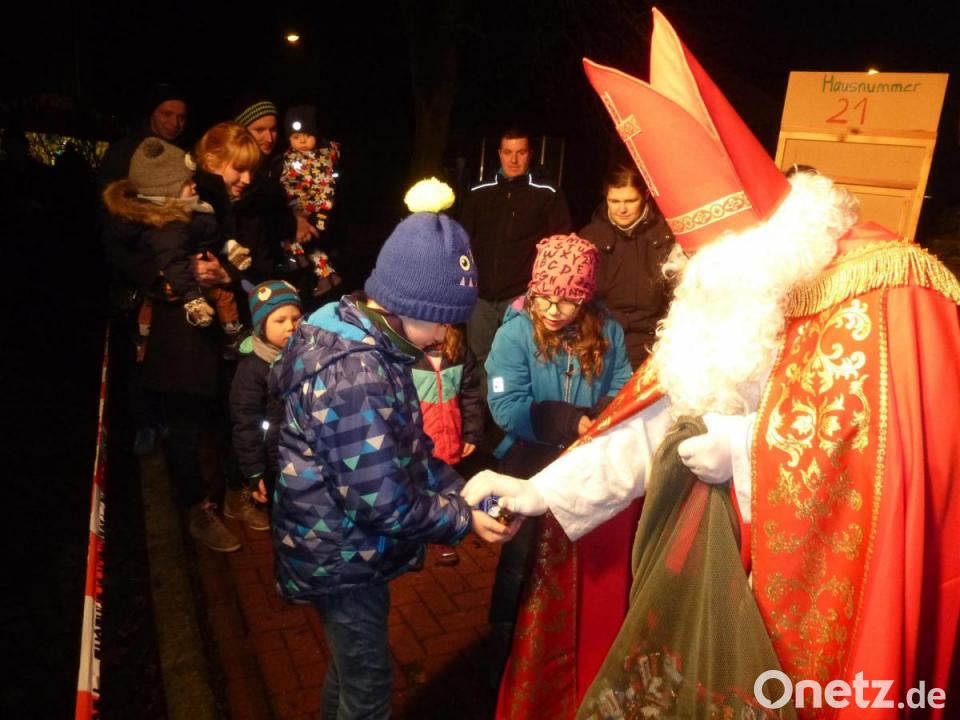 Der Nikolaus nahm sich Zeit für die Kinder, die sich um den Sack voller Süßigkeiten drängten. Der Fokus legte sich bis spät in die Nacht hinein auf Flanieren, Plaudern an den Stehtischen um Feuerofen und auf Genuss. Die Palette von handwerklichen Produkten lockte ebenso an wie die kulinarischen Köstlichkeiten. Standfestigkeit war aufgrund der Warteschlangen vor den Buden gefragt. Auch US-Frauen engagierten sich im Namen des Kindergarten-Elternbeirats. Die Gebrüder Liedl mit Familien sorgten für Flammkuchen in zwei Variationen. Die Helfer vor Ort-Truppe meldete als Erste Ausverkauf. Das Pulled Pork war offenbar sehr gefragt.