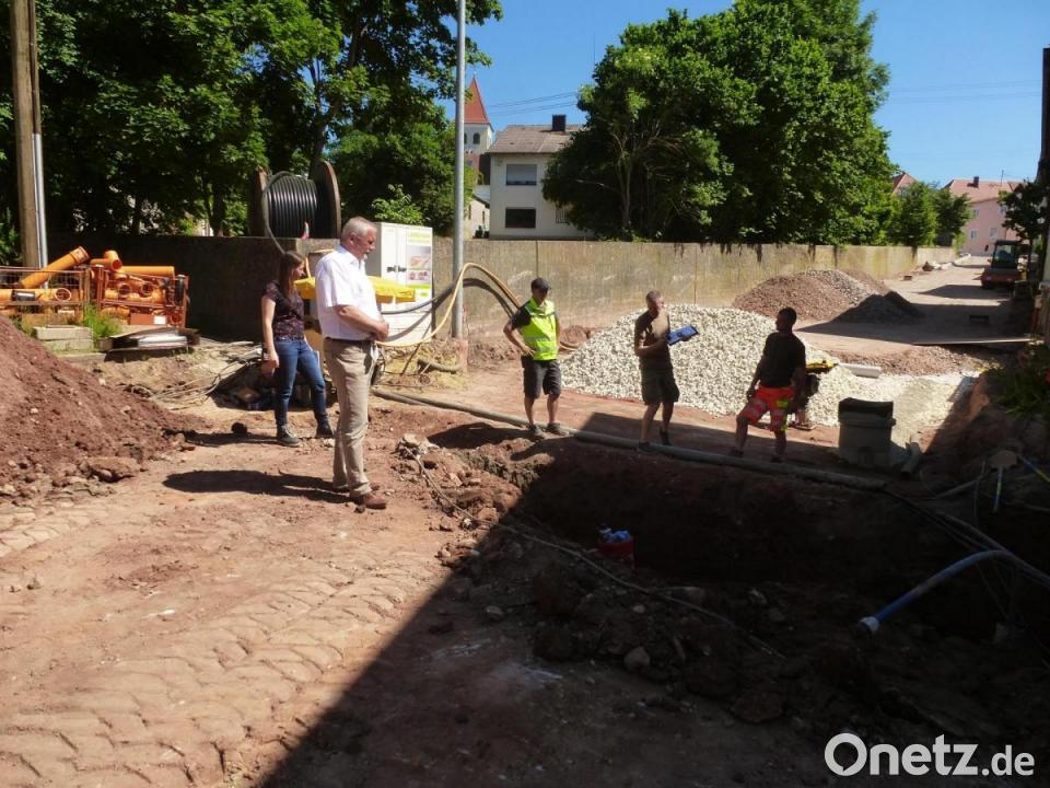 „Die beteiligten Firmen leisten gute Arbeit. Allerdings kam es witterungsbedingt zu unvermeidbaren Verzögerungen“, stellte Bürgermeister Ludwig Biller fest, als er sich vom Baufortschritt „Am Graben“ in Kaltenbrunn überzeugte. „Der aufgrund der Bodenbeschaffung erforderliche besondere Unterbau ist fast fertig. Die Pflasterung der Einfassungen wird fortgesetzt. Ende Juli wird die Straße asphaltiert“, erklärte Firmenchef Markus Schieder. Für den Kirchplatz, ursprünglich nicht im Maßnahmenbereich der Dorferneuerung vorgesehen, werden laut Christine Pschorn vom technischen Bauamt der VG Weiherhammer momentan die Kosten erstellt. „Dann entscheiden wir, ob die Deckschicht erneuert wird“, fügte Biller hinzu. Mit der Neugestaltung des Kriegerdenkmal-Umfelds hat die Firma Georg Kraus aus Mantel bereits begonnen.