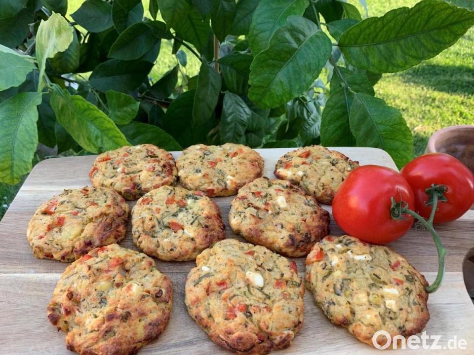 Salz, Pfeffer, Oregano sowie drei Esslöffel Olivenöl zugeben. Erneut gut durchmischen und eventuell mit Salz und Pfeffer nachwürzen. Den Teig 15 Minuten ruhen lassen. Aus dem Teig Frikadellen formen. Auf ein mit Backpapier belegtes Blech legen und die Frikadellen mit Olivenöl bepinseln.