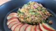 Die Tomaten mit kochendem Wasser übergießen, die Haut abziehen und klein würfeln. Feta zerbröseln und mit den Eiern zusammen mischen.