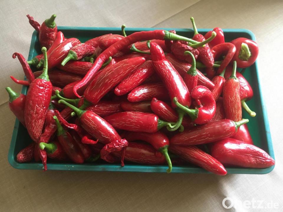 Er liebt Chili und baute gleich vier Sorten an. Heuer hat er eine wahre Rekordernte "eingefahren". Er kaufe seine Pflanzen im Frühjahr bei einer Gärtnerei in Neusorg. "Dort gibt's Spezialisten für Chilis", verrät er. Schon seit vielen Jahren darf die Chili in seinem Treibhaus nicht mehr fehlen.