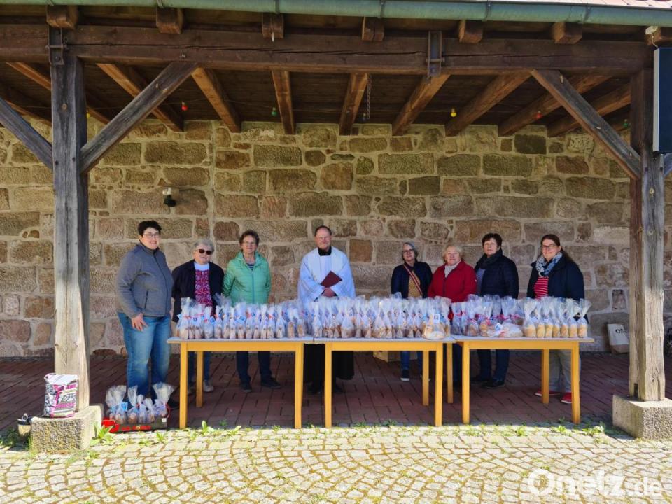 Zwölf Frauen standen dafür in der Küche, um 170 Lämmer in sechs Geschmacksrichtungen zu backen. Pfarrer Heribert Stretz segnete sie am Ostersamstag, bevor sie in den Verkauf kamen. Er sprach den Bäckerinnen seinen großen Dank aus, da sie mit dieser Aktion Jahr für Jahr segensreich für viele Menschen wirken. "Sie bringen den Käufern Freude und Entlastung und unterstützen mit dem Erlös aus dem Verkauf wohltätige Zwecke", sagte Stretz.