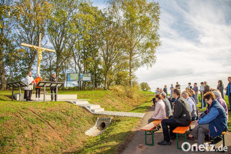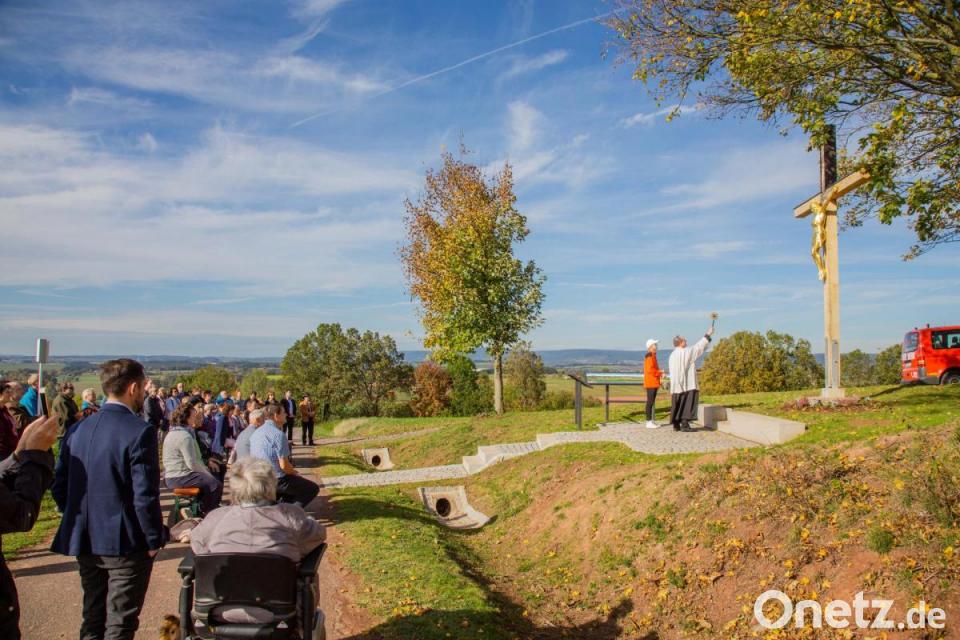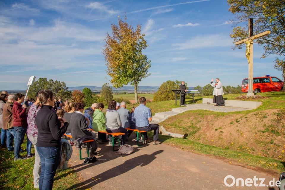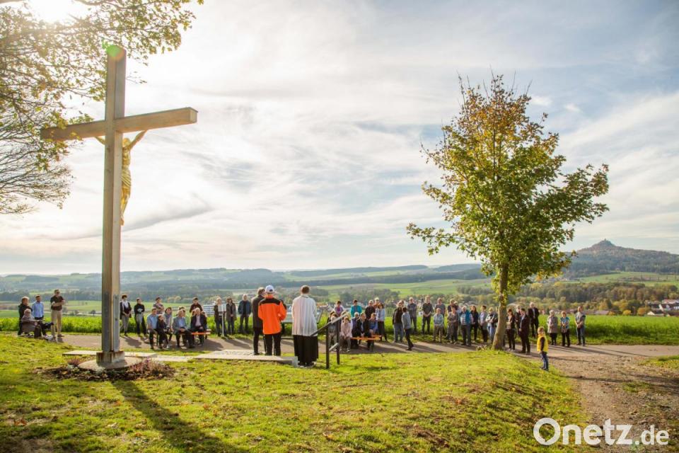 Im Licht der spätherbstlichen Sonne leuchtete der neu vergoldete Christuskorpus am Kastler Bergkreuz umso prächtiger. Diese Strahlkraft symbolisierte zugleich den Charme des Platzes oberhalb der Ortschaft Kastl. Vor weit über 50 Teilnehmern segnete Pfarrer Heribert Stretz das neu gestaltete Areal und das renovierte Kreuz.