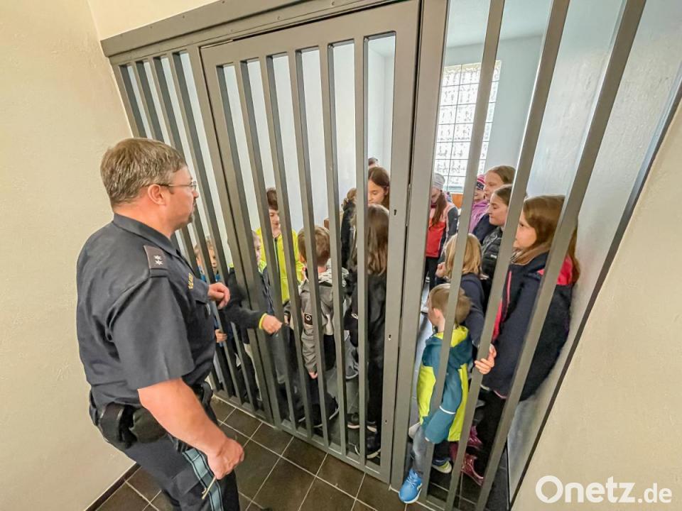 Polizeioberkommissar Carsten Landgraf erklärte die persönliche Ausrüstung eines Polizisten. Diese reichen vom Schlagstock über Handschellen, Funkgerät und Dienstwaffe. Ein besonderer Höhepunkt für die Kinder war die Besichtigung der Arrestzelle. Sie erfuhren, warum Menschen hier eingesperrt werden. Im Rahmen der „erkennungsdienstlichen Erfassung“ durften die jungen Besucher sogar selbst erleben, wie es ist, wenn Fingerabdrücke genommen werden.
