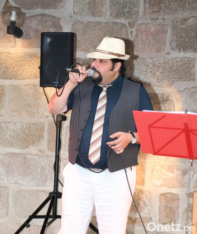 Mit Einbruch der Dämmerung gab es zu diesen Leckerbissen auch noch einen musikalischen Genuss mit dem italienischen Tenor Marco Borella aus Bayreuth. Wer klassische Musik erwartet hatte, wurde angenehm überrascht. Borella bot einen Streifzug durch italienische Melodien, die aus Funk, Fernsehen und der Welt der Oper bekannt sind.