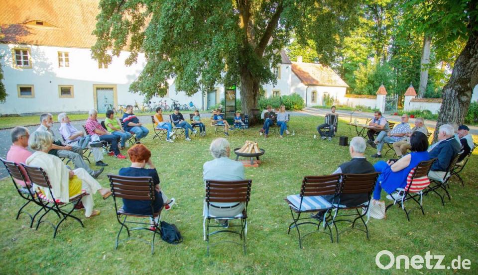 Die Stimmung im abendlichen Schlosshof hätte besser nicht sein können. Für das besondere Ambiente sorgten Maximilian von Grundherr zusammen mit seiner Ehefrau Felicia von Grundherr, die im Vorfeld alles mit vorbereitet haben. Ihnen dankte Bürgermeister Hans Walter besonders, dass die Veranstaltung bei ihnen stattfinden konnte.