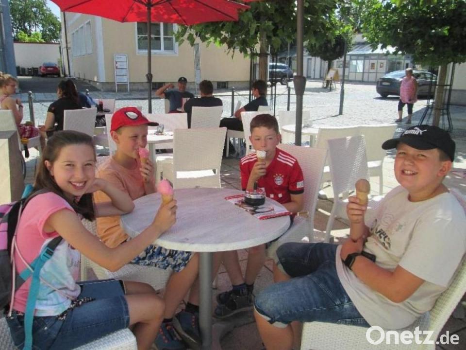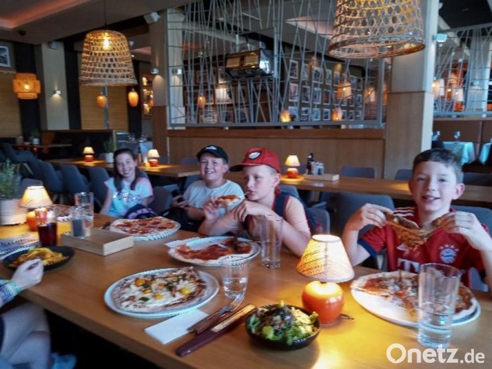 Für die vier ausscheidenden Kinder der betreuten Schülerinnen und Schüler war eine Eisdiele in Kemnath die erste Station. Dann ging es weiter nach Bayreuth zur Pizzeria "Feuer und Flamme". So gestärkt sahen sie sich im Cineplex-Kino den Film "Minions auf der Suche nach dem Mini Boss" an. Natürlich gab es Cola, Popcorn und Nachos.