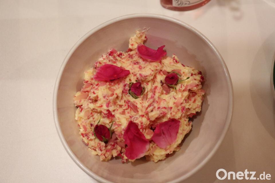 Kirschen, in Rosenwasser eingekocht, ergeben eine herrliche Marmelade. Aber auch das Rosengelee, die Rosenbutter und das Bruschettagemüse hatten es den Teilnehmerinnen angetan. Diese durften sie am Ende des Vortrages probieren.