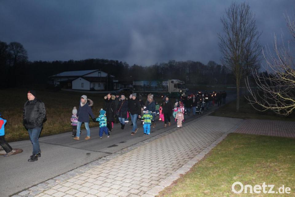 Der Elternbeirat des Kinderhauses Pusteblume legt viel Wert auf das Gemeinschaftsgefühl unter den Familien und organisiert deshalb immer wieder gesellige Unternehmungen. Am Sonntag trafen sich zahlreiche Familien in Kastl und marschierten im Fackelschein durch die Flur. Bereits am Ausgangspunkt, dem Schützenheim, genossen die Kinder den Freiraum: Sie untersuchten Eisplatten und ließen keine Wasserpfütze aus. Warm eingepackt machte ihnen auch der kalte Wind nicht viel aus. Bei einsetzender Dämmerung ging es los. Leider war keine Schlittenpartie möglich - der Schnee fehlte. Doch die Leuchtknickstäbe der Buben und Mädchen sowie die Fackeln machten die Wanderung trotzdem zu etwas Besonderem. Ziel war das Floriansheim in Unterbruck. Dort konnten sich alle mit warmen Wienern stärken und sich mit Tee oder Glühwein wieder aufwärmen.