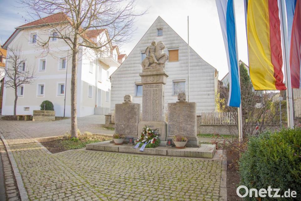 Anschließend zogen der Pfarrer, Bürgermeister Walter, eine Fahnenabordnung des Kriegervereins mit Vorsitzendem Michael Pühl sowie die Kranzträger vom Pfarrhof zum Kriegerdenkmal. Pühl gab das Kommando zum Niederlegen des Kranzes, während die Fahne gesenkt und drei Salutschüsse abgefeuert wurden. Während der gesamten Veranstaltung wurde auf die Hygiene- und Abstandsregeln geachtet.