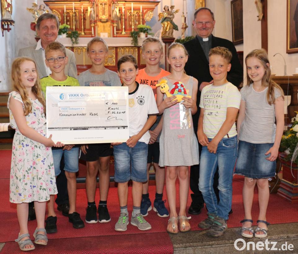 (rpp) Sieben von zehn Kommunionkindern und ihre Eltern haben beschlossen, auf Gegengeschenke zu verzichten. Lieber übergaben sie eine Spende an den Regensburger Verein zur Förderung krebskranker und körperbehinderter Kinder Ostbayern (VKKK). Dritter Vorsitzender Günther Lindner, der dafür extra aus der Bezirkshaupstadt angereist war, nahm die 1000 Euro entgegen.