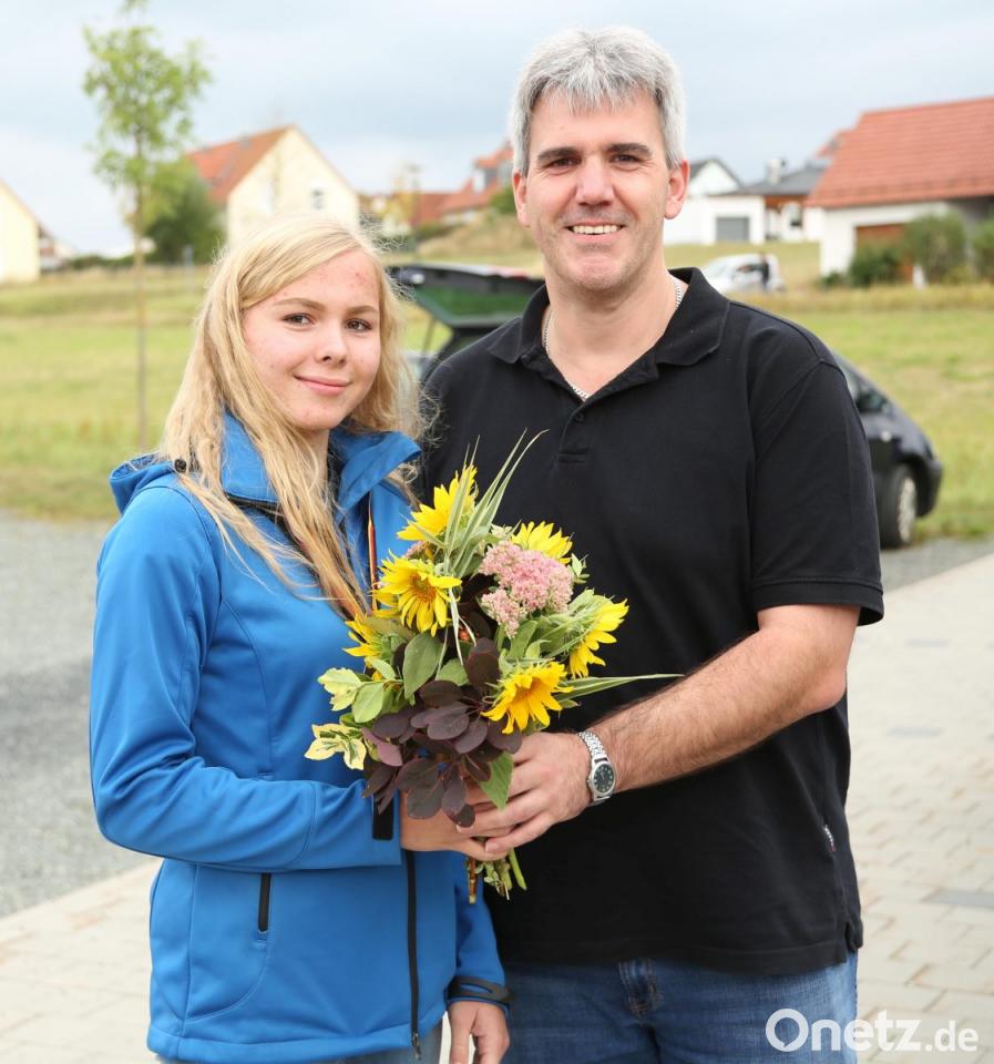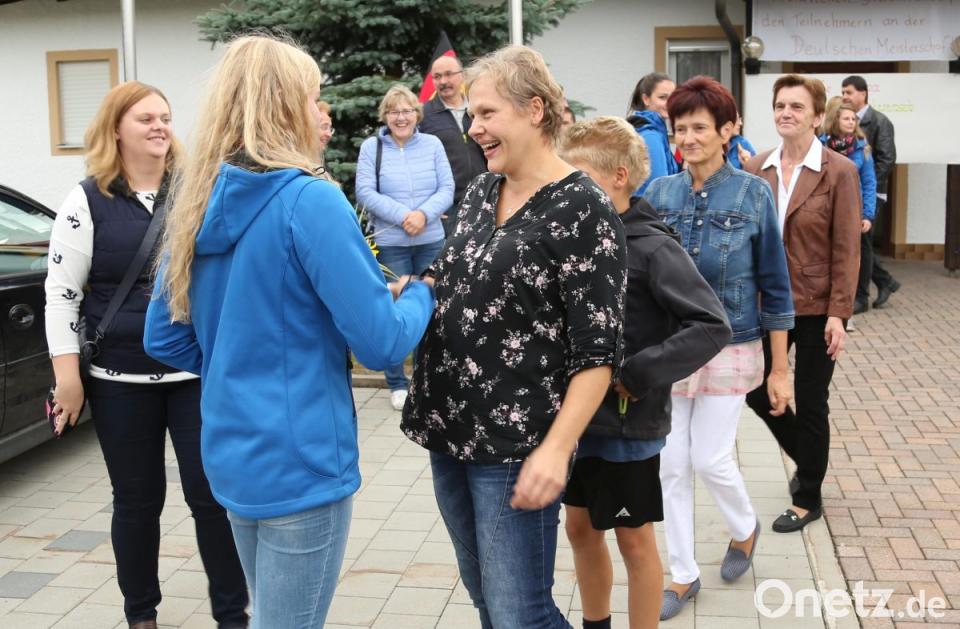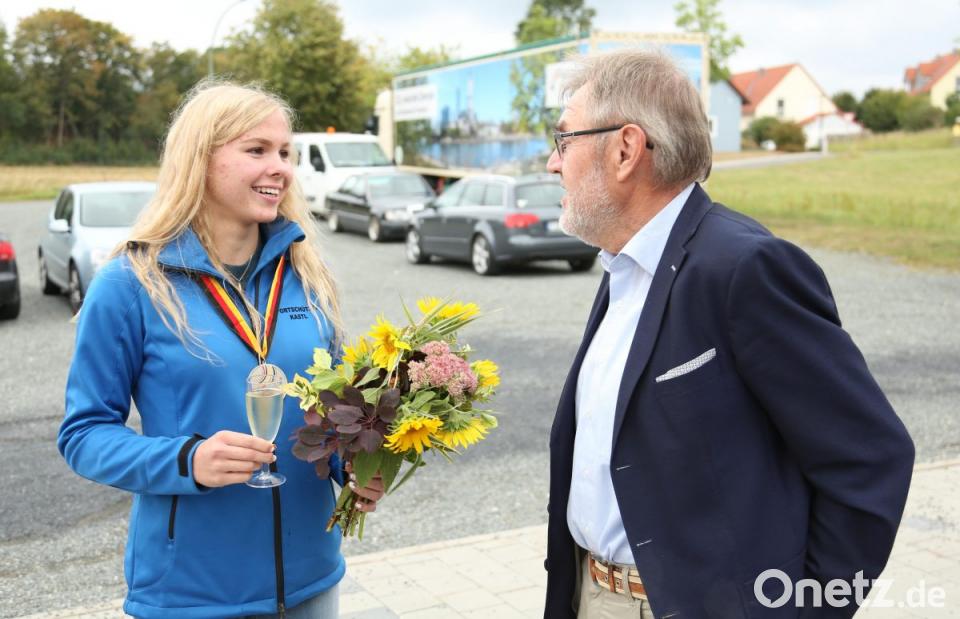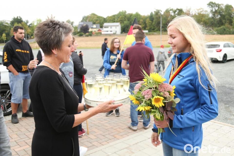 Mit einem Autocorso, einem Hupkonzert und wehenden Deutschlandfahnen wurde die deutsche Vizemeisterin durch Kastl hindurch begleitet. Am Schützenheim schossen die Kastler Böllerschützen zum offiziellen Sektempfang mehrfach Salut. Zahlreiche Vereinsmitglieder, Freunde, Bekannte und Verwandte kamen, um zum großartigen Erfolg zu gratulieren. Zwei große Banner waren über der Eingangstüre angebracht. Zahlreiche Glückwünsche nahm die junge Frau sichtlich überwältigt entgegen. Vorsitzender Wolfgang Raps überbrachte die Glückwünsche des Vereins und überreichte der Meisterschützin einen Blumenstrauß.