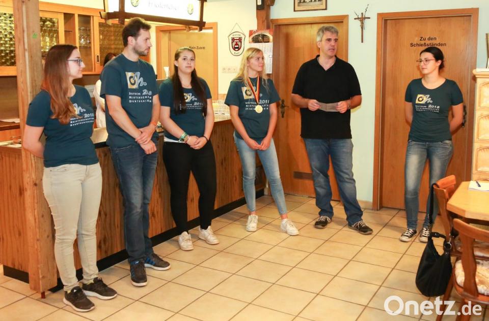 Im Anschluss an den Empfang vor dem Schützenhaus ging es zur Meisterschaftsfeier in die Wirtsstube. Vorsitzender Raps blickte auf vergangenen Sonntag und die Tage zuvor zurück. Als Elena Zimmermann am Sonntagvormittag zur Wertung antrat, hatte sie in den zwei Tagen zuvor bereits drei Wettkämpfe in unterschiedlichen Disziplinen hinter sich. "Als wir hier die Ergebnisse sahen, hatten wir bereits das Gefühl, dass es im kommenden Wettkampf für mehr reichen könnte", sagte Raps, der die Durchläufe mit den Schützen und Trainern genauestens verfolgte. "Mit großer Souveränität und Gelassenheit meisterte Elena den entscheidenden Wettkampf. Nach dem vierten und entscheidenden Durchlauf war klar, dass es Silber werden wird, nachdem es zur Halbzeit schon gut ausgeschaut hat", erzählte Raps weiter. Besonders lobend stellte er den großen Trainingsfleiß der jungen Frau heraus. In den vergangenen Wochen bereitete sich Elena Zimmermann mit den Trainern Lukas Haberkorn und Andreas Kausler intensiv auf die deutsche Meisterschaft vor.