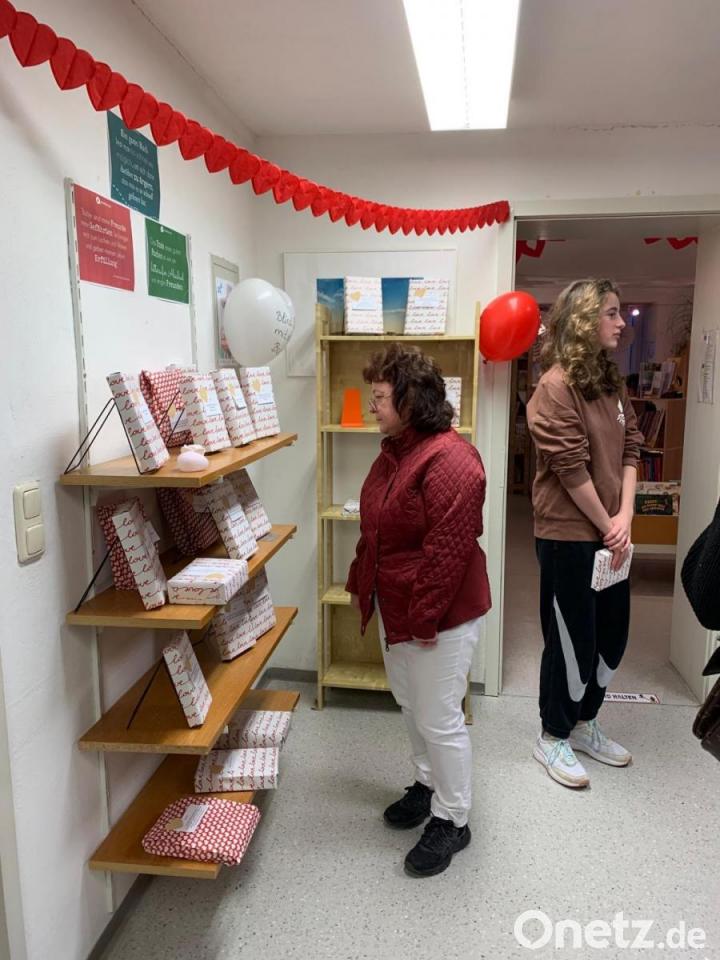Das Büchereiteam hatte viele Bücher für Erwachsene und Jugendliche in herzige Tüten eingepackt und mit nur wenigen Stichpunkten versehen. Es war nur zu erkennen, ob es ein Jugend- oder Erwachsenenbuch war, ein Krimi oder etwas fürs Herz. Die Leser konnten weder Titel noch Autor erkennen, freuten sich aber auf die Überraschungen. Jeder mutige Leser wurde mit einer kostenlosen Ausleihe belohnt.