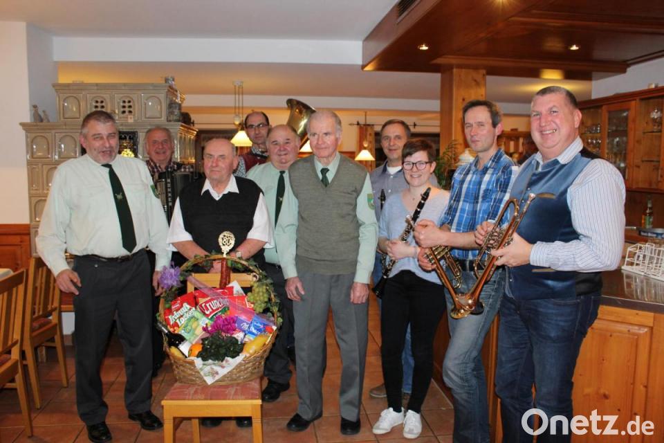 Herrmann Kratzer war Jahrzehnte lang selbst Musikant bei den Birgländern. Auch bei vielen anderen Gruppen packte er seine Klarinette aus. Gesundheitliche Gründe zwangen ihn, das Instrument beiseite zu legen. An seinem 80. Geburtstag kam der Vorstand des Schützenvereins Bruderbund Niederricht-Fronberg, um dem Ehrenmitglied mit einen Geschenkkorb zu gratulieren. Auch vom Musikantenstammtisch Lockenricht kamen Glückwünsche.