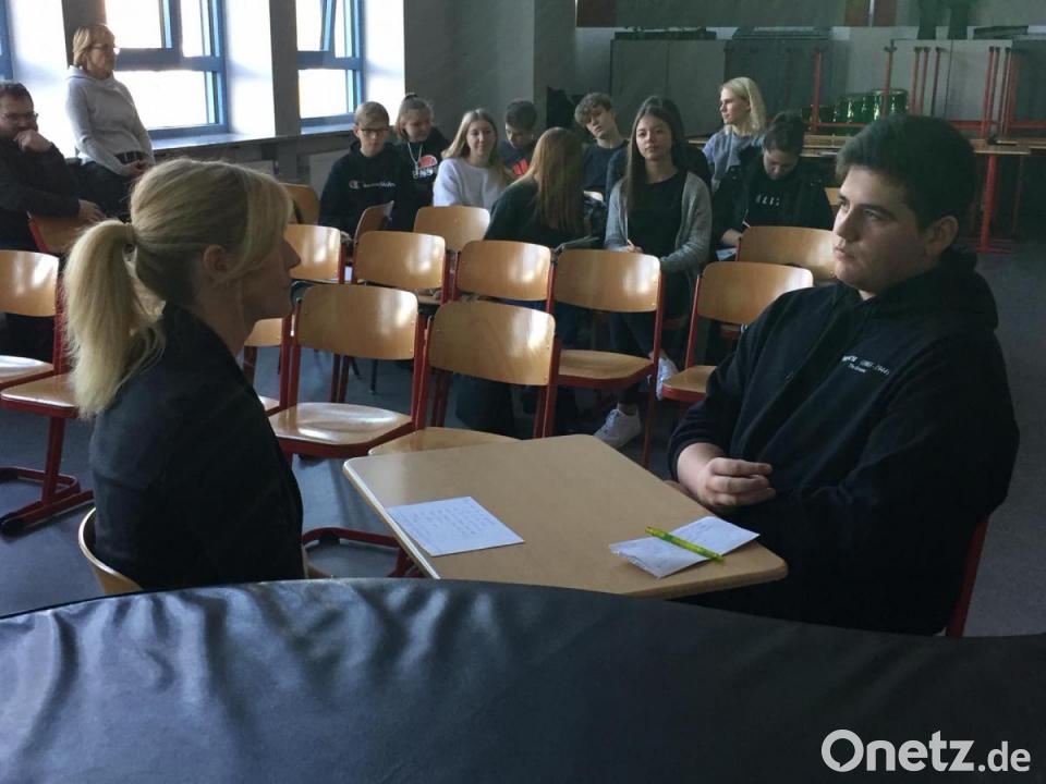 Nach einigen theoretischen Erläuterungen und praktischen Tipps stellte sie mit Schülern in Rollenspiele die Situation bei einem Bewerbungsgespräch nach. Dabei war Korecky die Personalchefin, der Jugendliche ein Bewerber für eine Stelle. Im Anschluss daran durften die Mitschüler konstruktive Kritik üben. Sie hatten notiert, was gut und was weniger gut war.