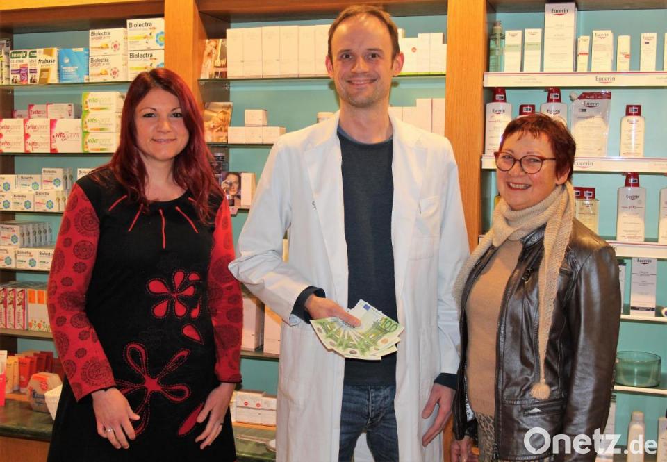 Über Spenden in Höhe von jeweils 1615 Euro freuten sich Edith Lippert, Schirmherrin der Aktion "Lichtblicke" im Landkreis Tirschenreuth, sowie Jessika Wöhrl-Neuber vom Familienzentrum Mittendrin freuen: Der Kemnather Apotheker Sebastian Vonhoff überreichte insgesamt 3230 Euro aus der Weihnachtsaktion seiner Stadt- und Vorstadt-Apotheke. Statt Weihnachtsgeschenke wanderten pro Kunde zwei Euro in vorbereitete Boxen.