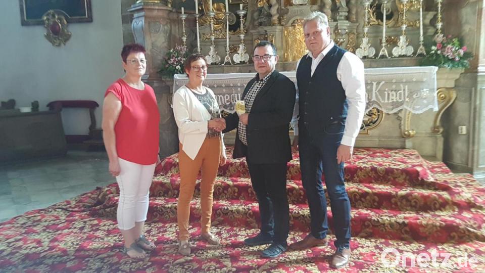 Über einen Spendenbetrag von 600 Euro freute sich Edith Lippert, Schirmherrin der Aktion Lichtblicke im Landkreis Tirschenreuth: Pfarrer Amschl überreichte die Spende mit der Pfarrgemeinderatssprecherin Sigrid Reger-Scharf und Kirchenpfleger Reinhard Herr, die im Namen des Pfarrgemeinderats und der Kirchenverwaltung anwesend waren. Der Spendenbetrag ist Teil der von den weltlichen und kirchlichen Vereinen der Pfarrei Mariä Himmelfahrt sowie einer Vielzahl von Privatpersonen erbrachten Spenden anlässlich der Verabschiedungsfeierlichkeiten von Pfarrer Konrad Amschl im Juli diesen Jahres. Stadtpfarrer Amschl verlässt zum 1. September nach 17 Jahren die Pfarrei Mariä Himmelfahrt in Kemnath und wird künftig die Seelsorge in der Pfarreiengemeinschaft Bärnau, Schwarzenberg und Hohenthann übernehmen. Edith Lippert zeigte sich von dem hohen Betrag sehr überrascht und bedankte sich herzlich für die Spende. Sie verwies darauf, dass die Aktion Lichtblicke wegen der von ihr zahlreich geleisteten Hilfestellungen in vielfältigsten Lebenslagen ständig auf finanzielle Unterstützung angewiesen sei. Die Aktion helfe sehr diskret und ohne Aufsehen vor Ort und habe sich dafür zwischenzeitlich große Anerkennung erworben.