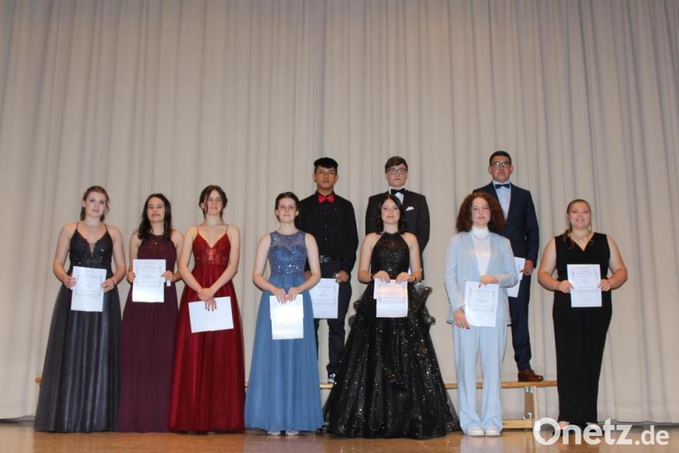 54 der 135 Entlassschüler der Realschule Kemnath haben im Abschlusszeugnis eine Eins vor dem Komma stehen. Dazu gehören auch die Besten der 10c von Klassenleiter Ralf Bäuml: Michelle Riedl, Linus Haider (beide 1,08), Magdalene Schmidt, Hannah Bayer (jeweils 1,17), Lisa Zintl (1,25), Lea Hansbauer, Nina Ebnet (beide 1,5), Lisa Kellner (1,58), Robin Hecht (1,67), Lukas Roßner, Emre Kacan (1,83), Moritz Dierl (1,85), Lea-Sophie Schübel und Lisa Büttner (beide 1,92). In der 10d (rechtes Bild) von Klassenleiter Alexander Licha schnitten Lena Wöhrl, Bastian Frazier (jeweils 1,08), Samuel Fischer (1,17), Hannah Wiedemann, Jule Schusser (jeweils 1,25), Ann-Cathrin Manze, Juliane Klünk (beide 1,67), Johanna Stickling, Hannes Schwenk und Katja Elstner (alle 1,92) am erfolgreichsten ab.