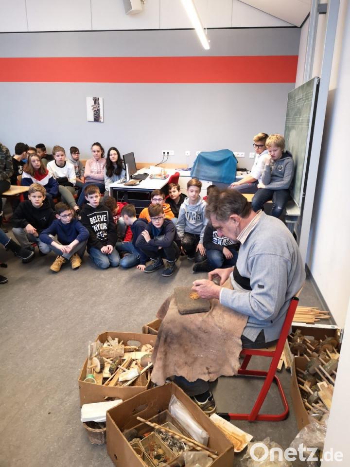 Die spannende Reise in die Steinzeit begann mit einem theoretischen Teil, der mit einer Diashow den Schülern der Realschule fundiertes und handfestes Wissen vermittelte.