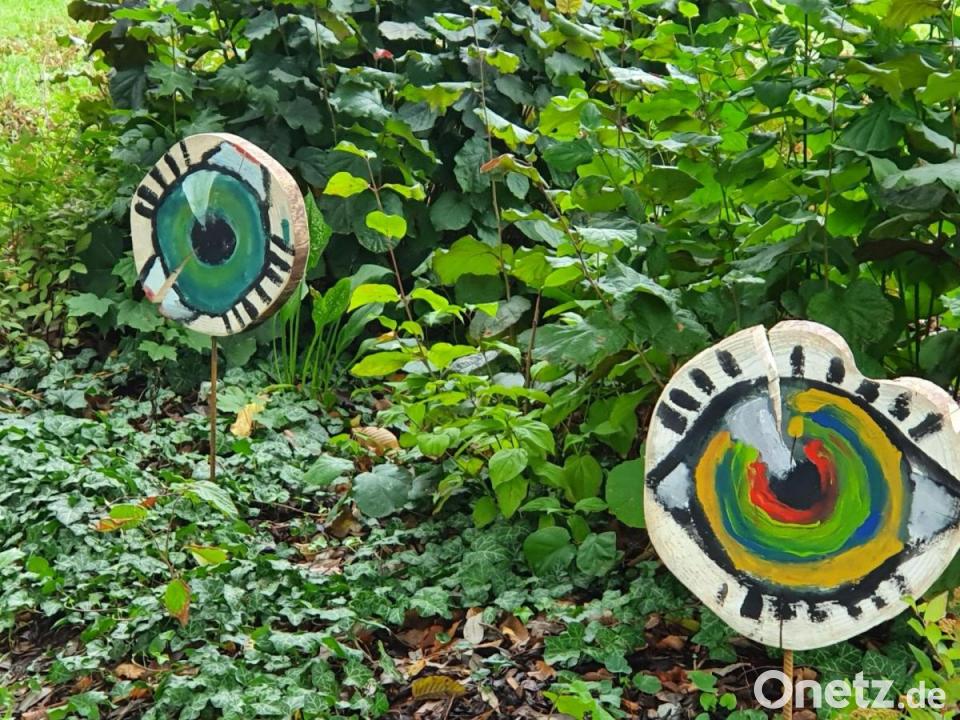 "Kreative Augen auf Baumscheiben malen" durften Kinder im Ferienprogramm im Atelier an der Stadtmauer. Jetzt wurden diese kleinen Kunstwerke in die Blumenbeete entlang des Karpfenweges und im Bereich des Seeleitenparks gelegt. Dort können sie im Seeleitenpark bewundert werden. "Sie schauen den Betrachter aus den Blumenbeeten an", meinte Künstlerin Susanne Vonhoff. Sie bedankte sich beim Kemnather Bauhof für die Hilfe.