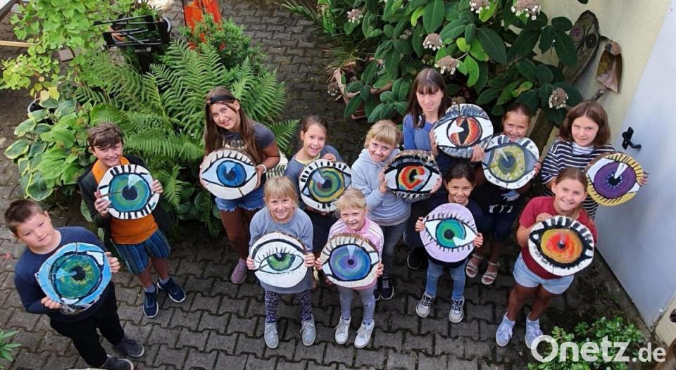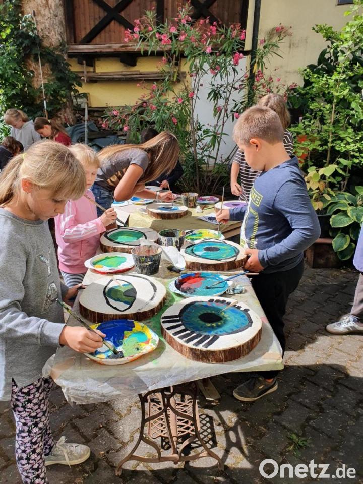 "Wir bemalen Baumscheiben mit Augen", lautete die Aufgabe für 12 Kinder ab acht Jahren im Atelier an der Stadtmauer. Diese Kunstwerke werden laut Susanne Vonhoff in die Blumenbeete entlang des Karpfenweges gelegt.