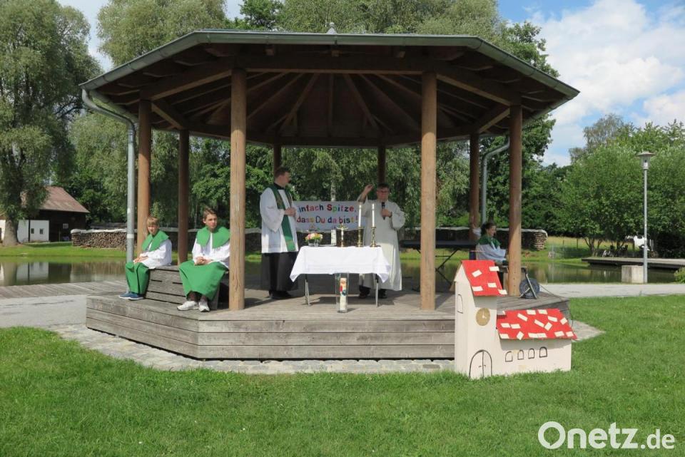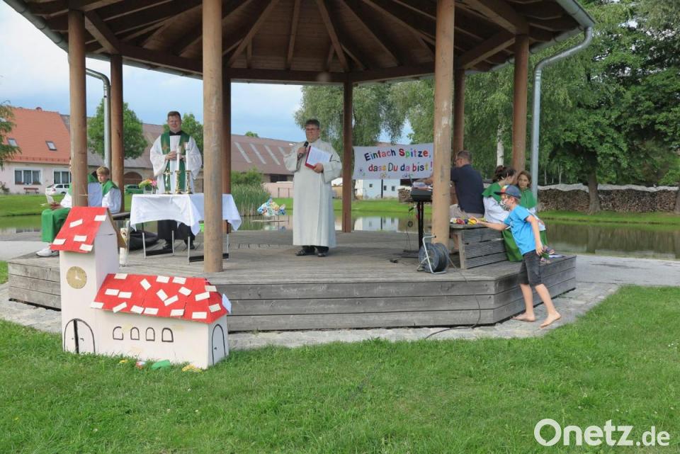 "Wir wollen gemeinsam singen, springen, lachen und beten", forderte sie Stadtpfarrer Thomas Kraus auf. Gleich zu Beginn erinnerte Gemeindereferent Jochen Gößl die Eltern und ihre Kinder an wichtige Regeln in der Corona-Pandemie: "Bleibt als Familie auf eurer Picknickdecke. Dort könnt ihr euren Mundschutz abnehmen."