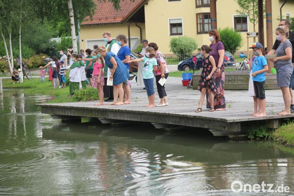 Zum Schluss stimmten alle ein in das Lied "Gottes Liebe ist so wunderbar", das Thomas Völkl auf dem E-Piano begleitete. Kurze Zeit später öffnete der Himmel seine Schleusen und ein Regenschauer prasselte auf das Eisweihergelände nieder.