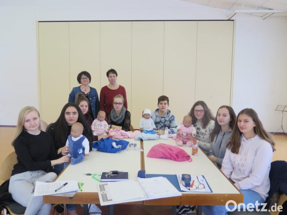 Sieben Schüler aus der Klasse 9M9 der Kemnather Mittelschule entschieden sich freiwillig für das "Elternpraktikum" der Jugendsozialarbeit und des Gesundheitsamtes Tirschenreuth. Ansprechpartner für die Neuntklässlerinnen waren Jutta Sehm (Gesundheitsamt) und Sozialpädagogin Carola Reger von der Grund- und Mittelschule Kemnath. Sie ist für die Jugendsozialarbeit an der Schule (JaS) verantwortlich. Für eine kurze Zeit schlüpften die Schüler in die Mutter- beziehungsweise Vaterrolle. Unter realistischen Bedingungen erprobten sie ihre Fähigkeiten im Umgang mit einem neugeborenen "Kind".